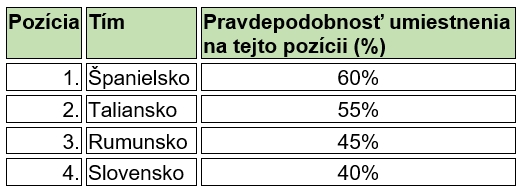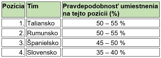 odrážajú individuálne šance každého tímu na konkrétne umiestnenie, nie