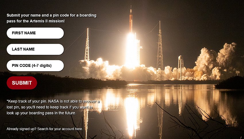 NASA ti ponúka virtuálnu účasť na tomto lete prostredníctvom pridania tvojho mena na SD kartu, ktorá bude uložená v kabíne letového modulu Orion. Stačí, ak sa do 21. januára 2026 prihlásiš na URL adresu k získaniu palubného lístka (boarding pass), zadáš svoje meno a priezvisko, 4-7-miestny PIN a zadané údaje odošleš. Palubný lístok si potom budeš môcť stiahnuť a následne sa staneš virtuálnym astronautom a virtuálne poletíš k Mesiacu.